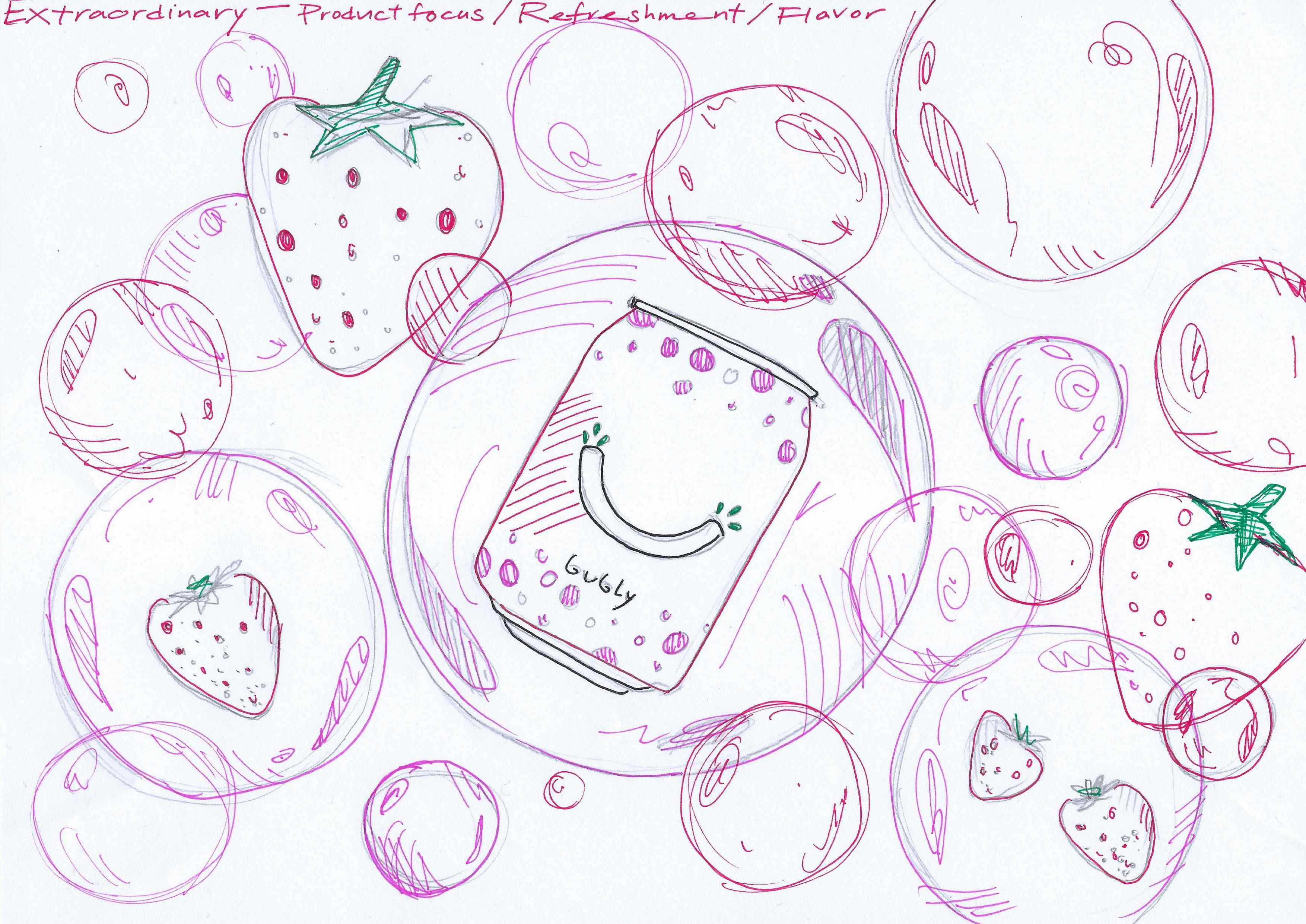 The Bubly new look and feel lifestyle photoshoot began with out-of-the-box sketching, ideating, and endless researching to find a new (yet familiar) language that fits the brand guidelines but is elevated from how Bubly showed up in OOH previously.